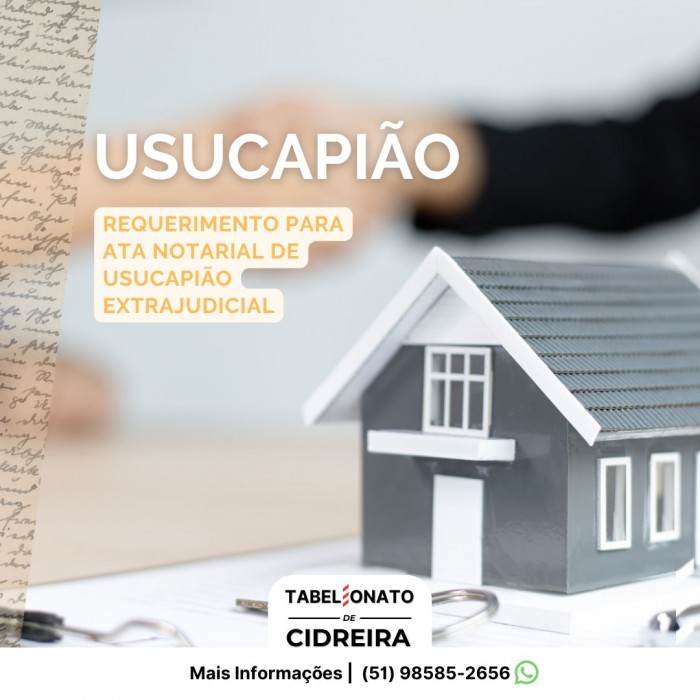 Ata Notarial de Usucapião ExtrajudicialInformamos que está disponível o modelo de requerimento para solicitação de Ata Notarial de Usucapião Extrajudicial.O documento deve ser preenchido... VER MAIS [+]
